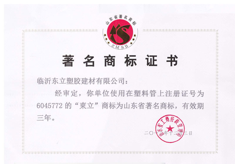 著名商標證書